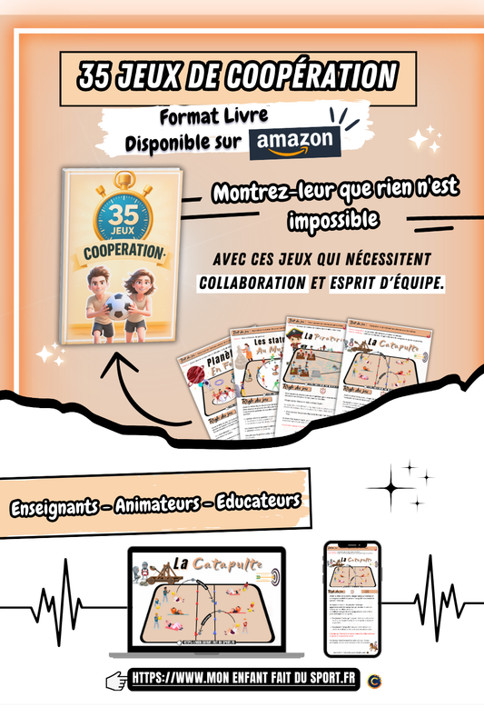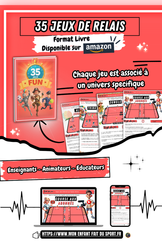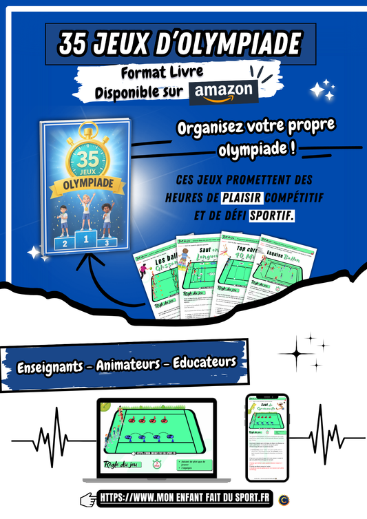 Transformez chaque activité sportive en une aventure amusante avec 35 Jeux Sportifs Fun ! Ce livre, idéal pour enseignants, animateurs, et éducateurs, propose 35 jeux uniques, chacun associé à un univers thématique, stimulant la créativité et l’esprit d’équipe. Disponible sur Amazon, c’est l’outil parfait pour rendre le sport ludique et éducatif.