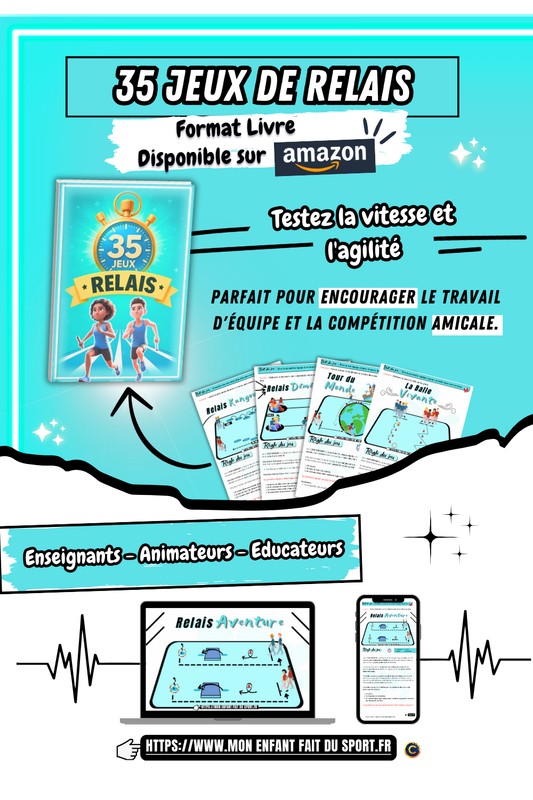 Transformez chaque activité sportive en une aventure amusante avec 35 Jeux Sportifs Fun ! Ce livre, idéal pour enseignants, animateurs, et éducateurs, propose 35 jeux uniques, chacun associé à un univers thématique, stimulant la créativité et l’esprit d’équipe. Disponible sur Amazon, c’est l’outil parfait pour rendre le sport ludique et éducatif.